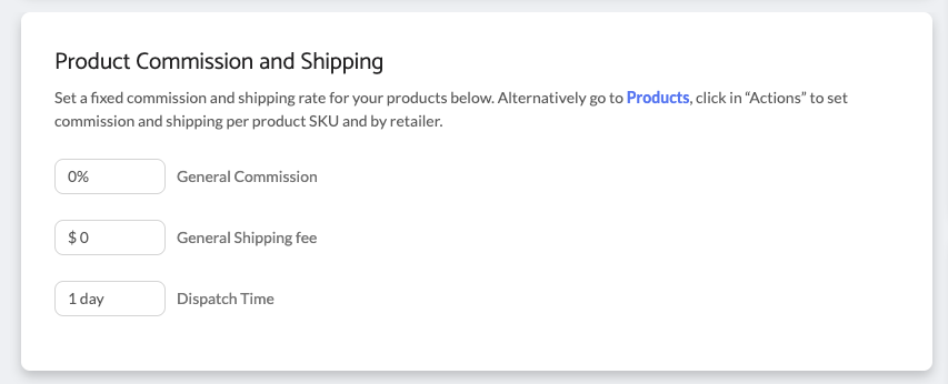 4. Set your general commission and shipping which will apply to all Retailers.