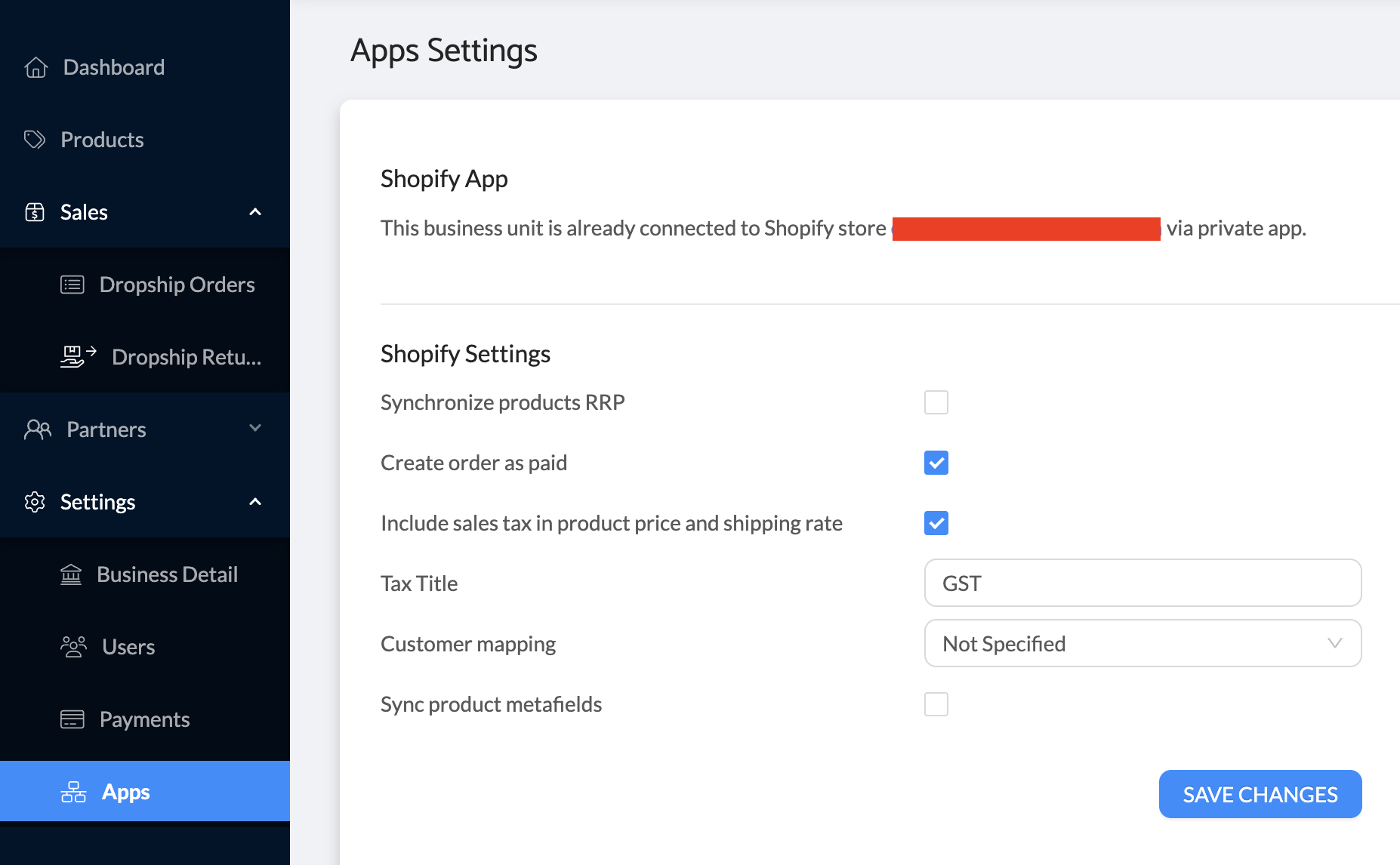 - By ticking "Sync Product Metafields" you are providing product metafields to retailers to ensure they can capture the full product listings detail from your Shopify store.