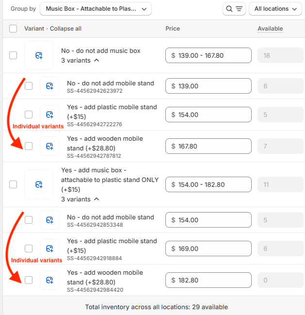 In some cases, mapping issues can occur when a retailer publishes all product variants (including optional ones) and later removes a product option in Shopify.