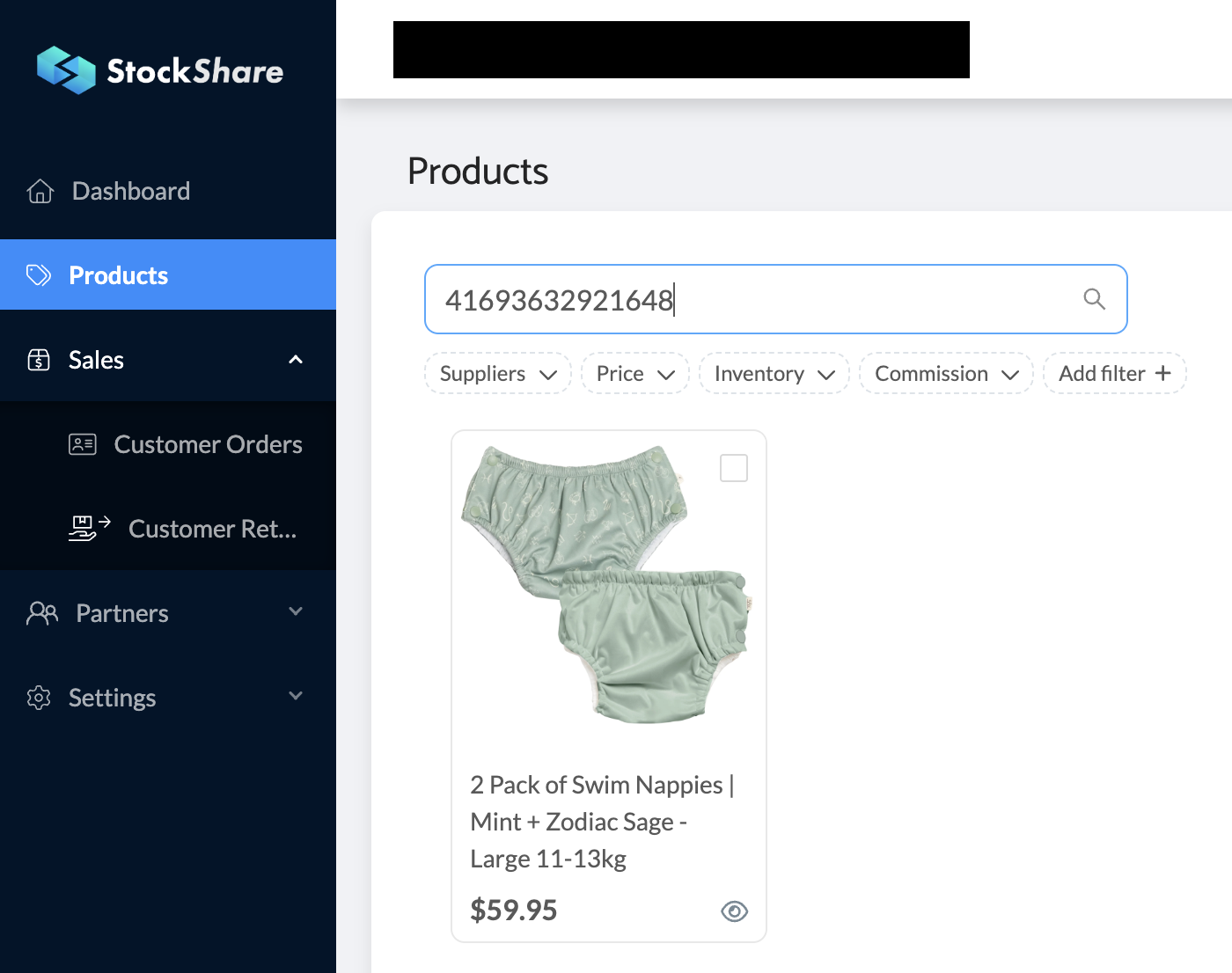 For example: If the SKU is SS-12345, search for 12345 (do not include the “SS-”).