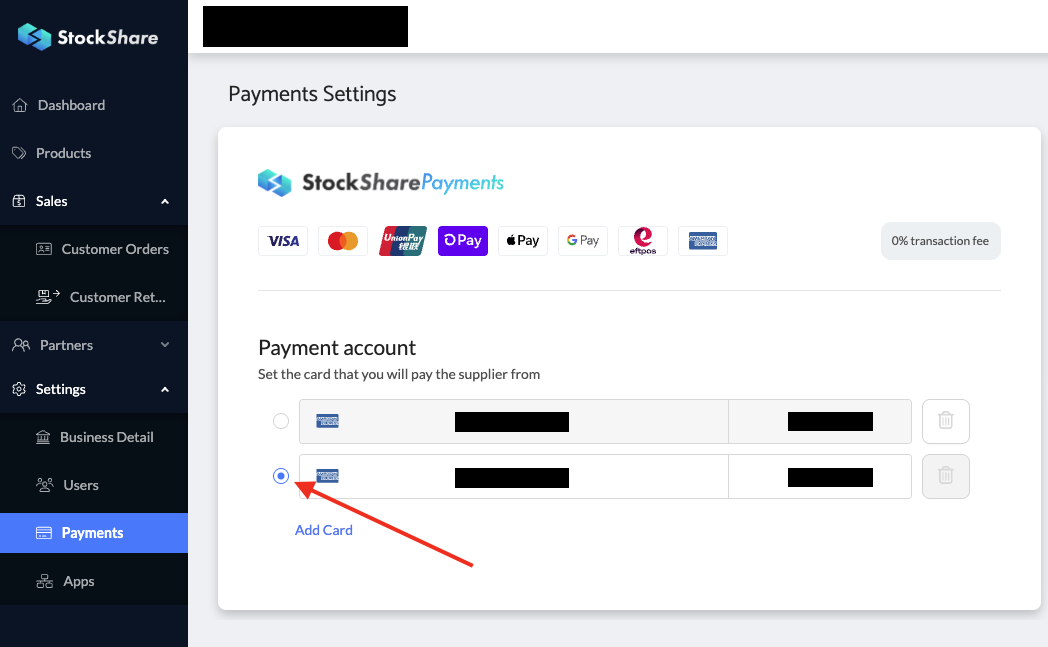 - If you have two credit cards linked in your StockShare account (how to access your credit cards), StockShare only uses the one that was selected. To retry payment with the second credit card, you firstly have to select it on the configuration page and then retry payment on the order page: