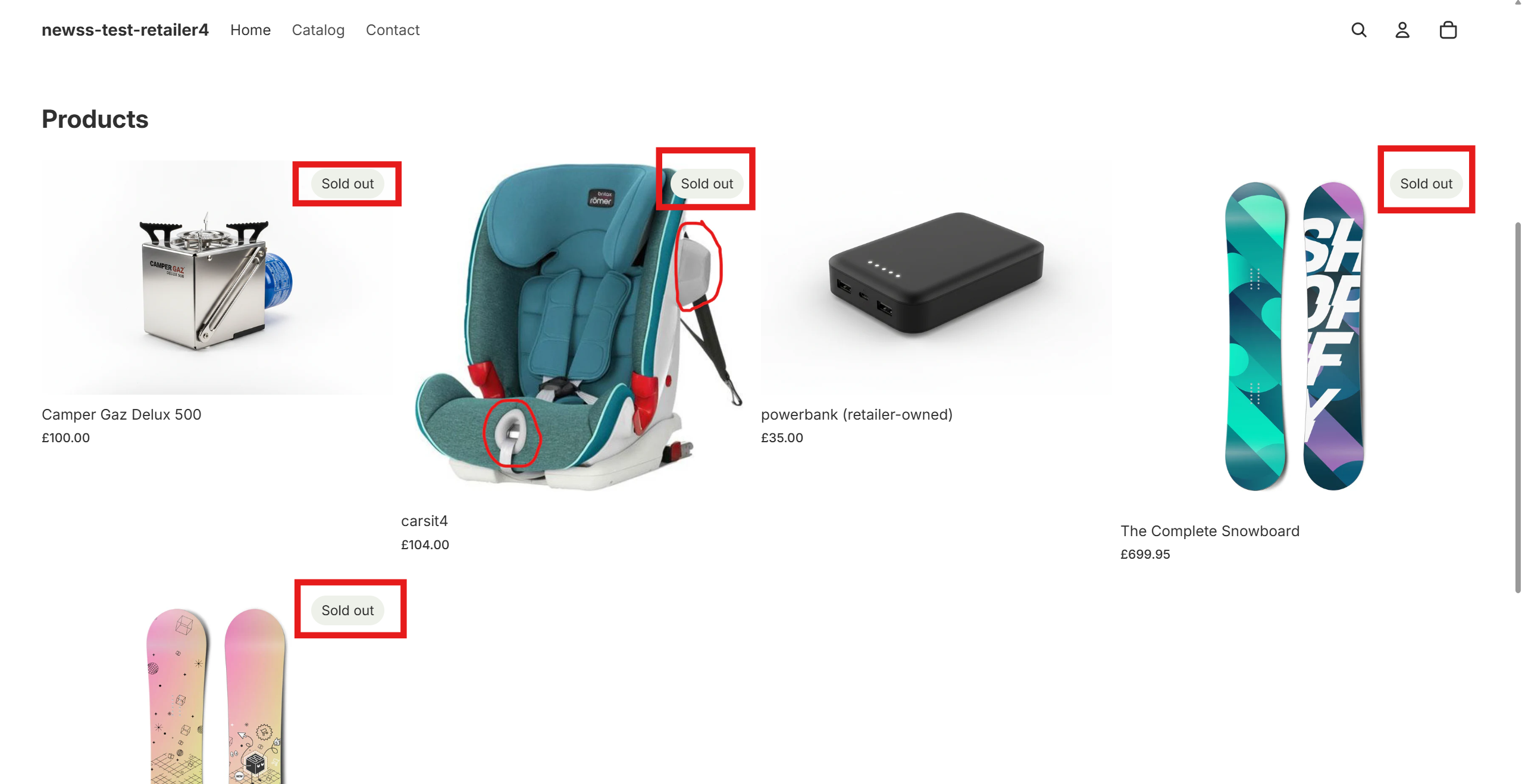 If a Retailer has published a supplier product from StockShare to Shopify and followed all steps in this guide, but the product is showing as “Sold Out” or not appearing on the Shopify website (see below examples), it is most likely because the product has not been assigned to the StockShare fulfilment location in Shopify.