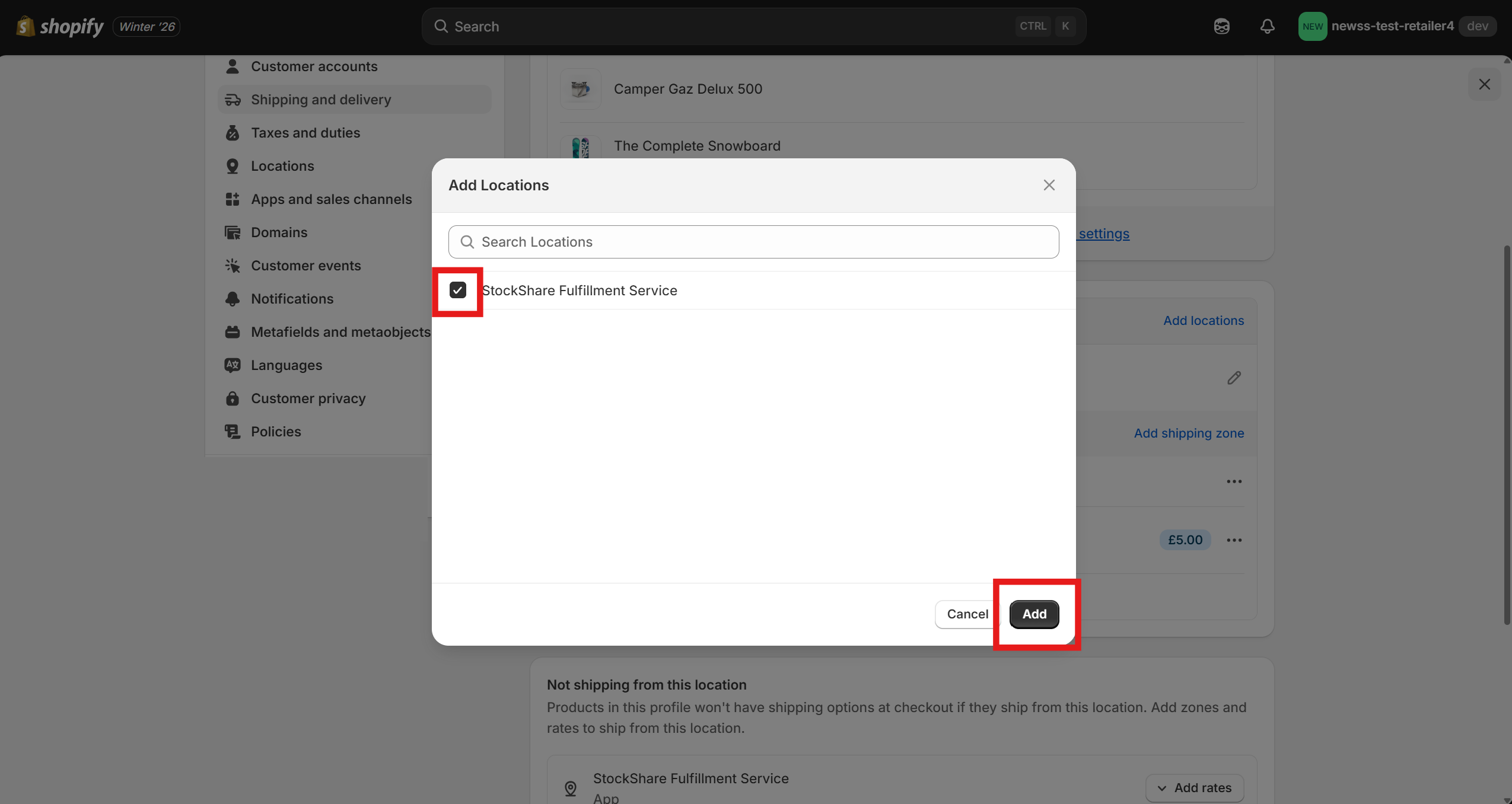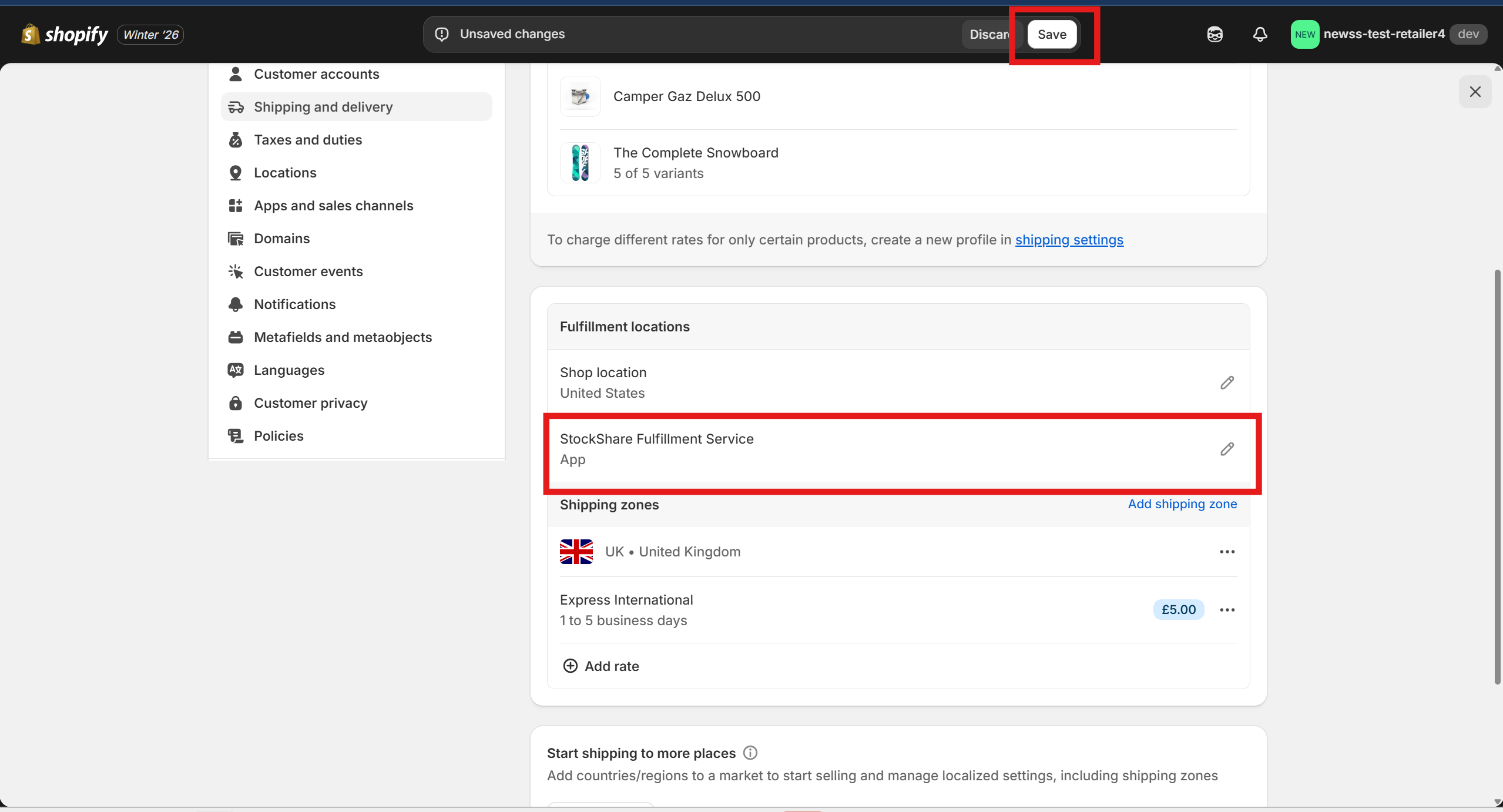 4. Ensure "StockShare Fulfilment Service" is under "Fulfilment Locations" and click the "Save" button.