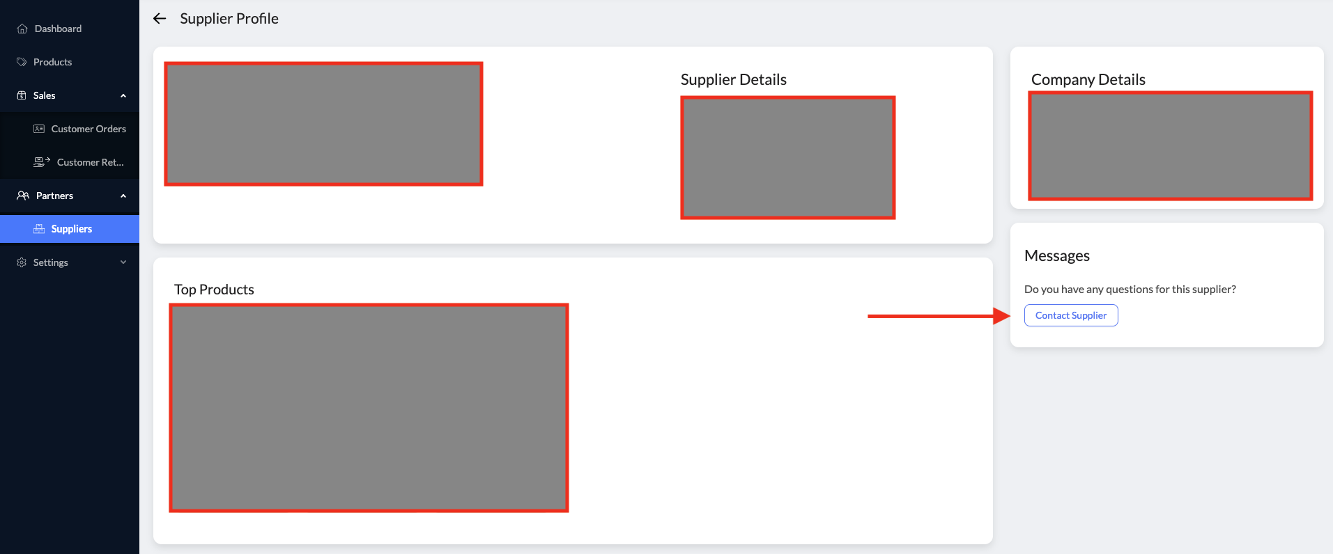 1. Suppliers can be messaged from the “Suppliers” tab on the left menu under "Partners":